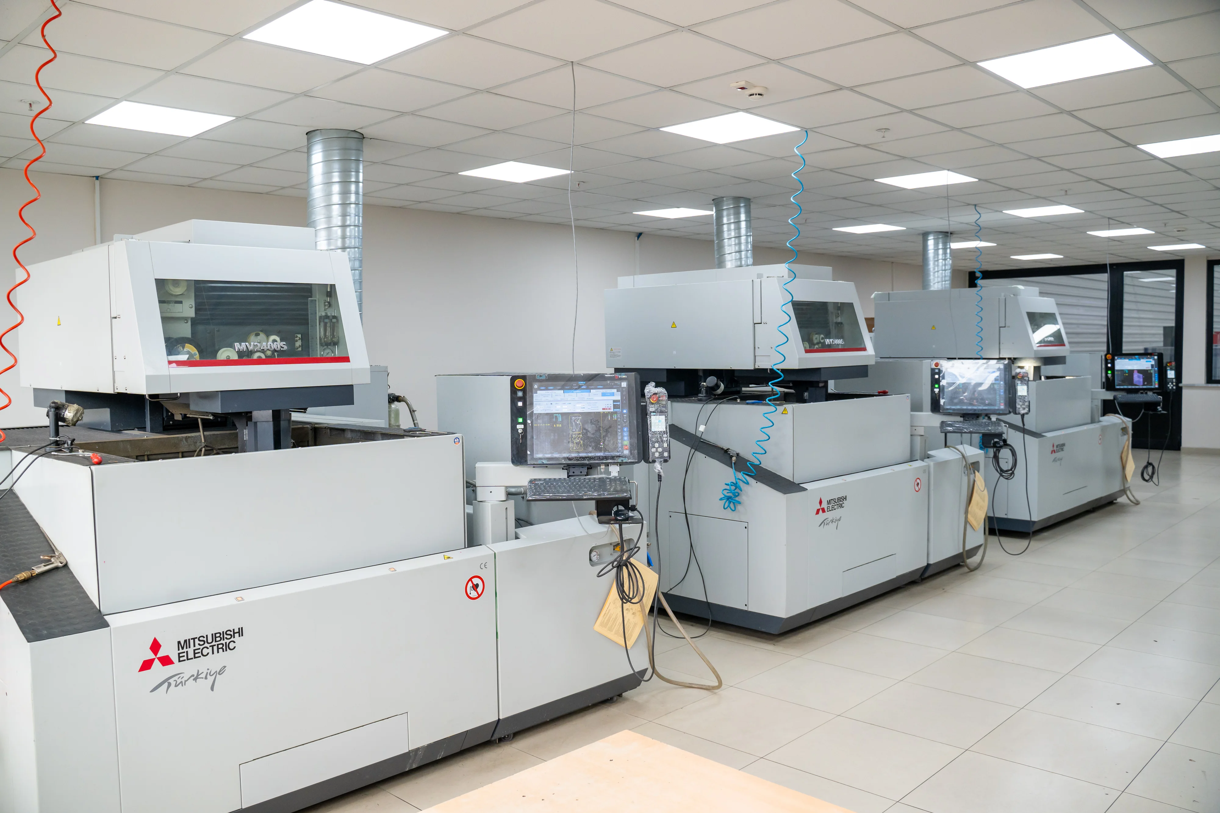 Three factories in Sakarya, Turkey with 30,000 m² closed area. State-of-the-art equipment: CNC, tool shop, automated press lines (60–500 tons). In-house spring production for precision and reliability. Flexible assembly lines: manual, semi-automatic, and fully automated.